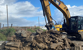 解体現場で発生する、「コンクリートがら」を一時的に保管します。他社からの受け入れも行っています。
