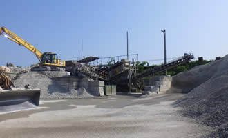 コンクリートがらを「破砕機」で破砕し、骨材を製造します。